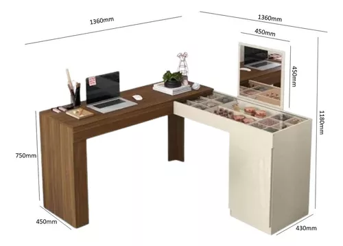 Escrivaninha com Penteadeira de Canto STAR